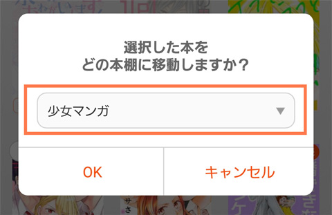 「移動」をタップすると作品の移動先を選択して他の本棚へ移動できます。