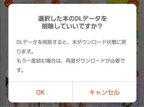 「DLデータ削除」をタップすると作品のダウンロードデータを削除できます。
