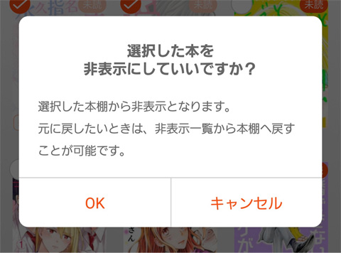 ※非表示にした作品は、本棚アプリとMY本棚の両方で非表示になります