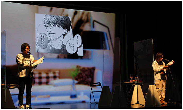 4作品目は、にかわ柚生先生の『僕の飼い主』です! 葉山さん演じるなるみと、小野さんが演じる界が出会った回想シーンからスタート。
