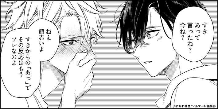爽やかに都成をいなす久住ですが内心は「近い近い近い近い顔が近い!!!」と大慌て。 外面と内面のギャップが可愛いです。