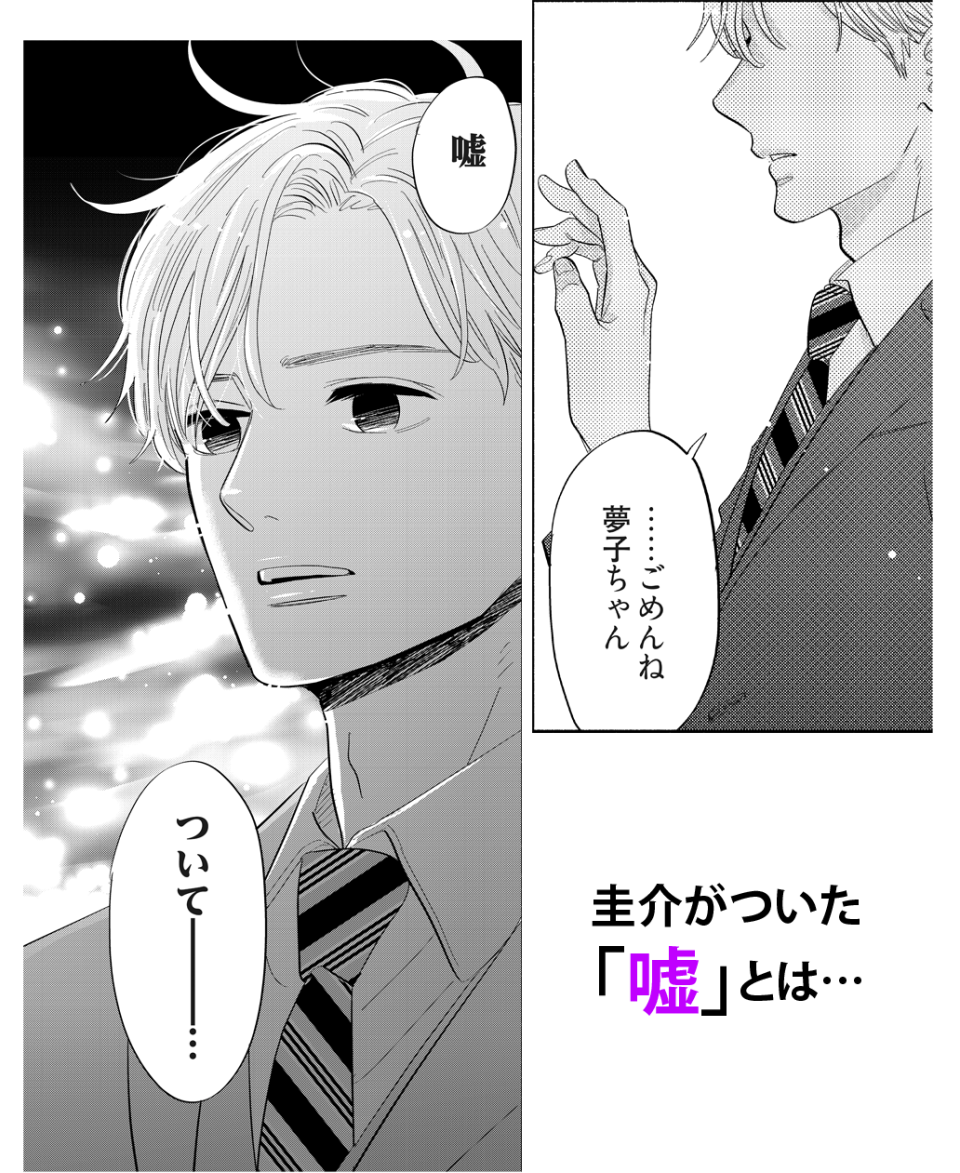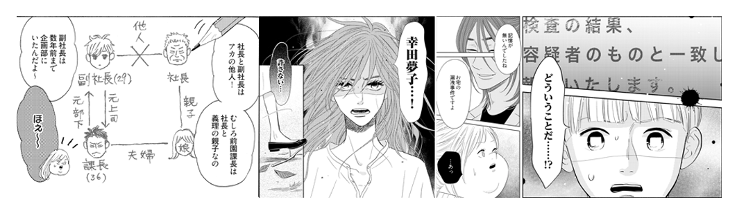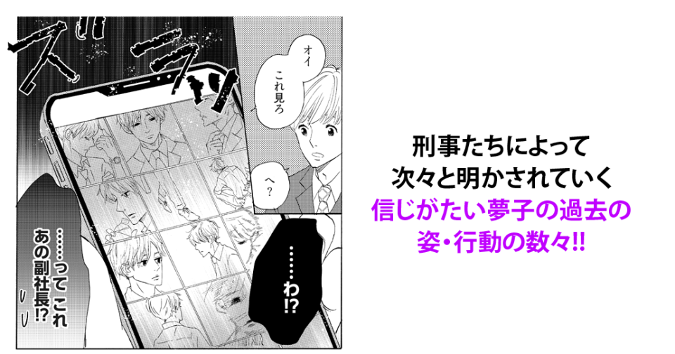夢子と圭介の恋愛が進むにつれて、忘れていた真実が少しずつつまびらかにされていく。過去の夢子に因縁がある人物も次々登場し、恨まれている様子も…夢子は何をしてしまったのか? 真実に近づくと命を狙われる刑事たち…!物語は予想以上に闇深く、誰が正義で誰が悪なのか…!?今後の展開に目が離せない。