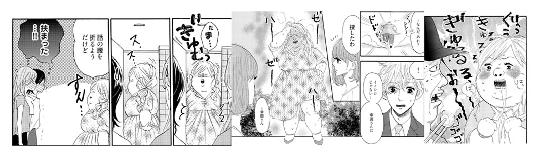 作中に多数散りばめられた、話の本筋とは無関係な夢子の「おデブネタ」も見どころのひとつ!マンガならではのギャグタッチと夢子のぷにぷにの肉感は、ままかり先生の圧倒的表現力とセンスのなせる業!