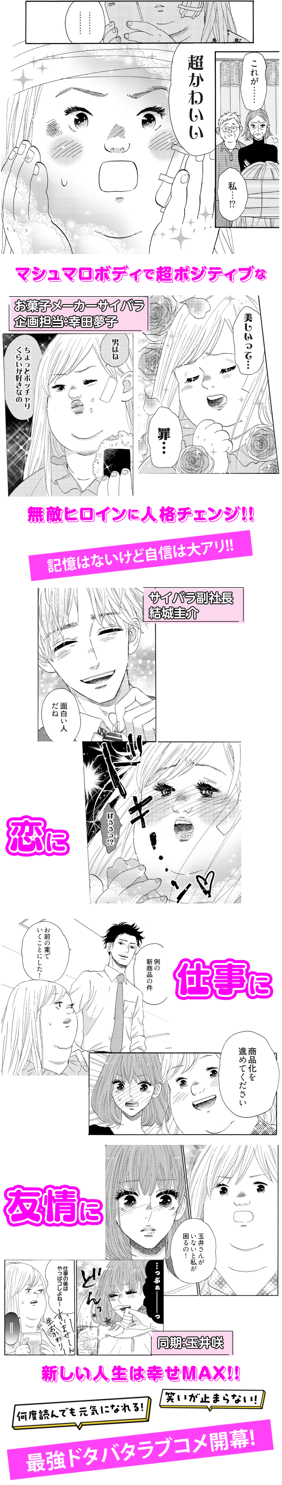 転落の衝撃で重傷を負い、死の淵から生還した夢子。記憶喪失と引き換えに超ハッピーで自己肯定感爆上がりな性格にキャラ変!周囲の戸惑いや嘲笑をよそに、日常の全てをポジティブ変換しちゃう夢子の破壊力は、読み手のちょっとした悩みなんて吹っ飛ばすレベル!