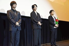 観客の大きな拍手に迎えられ3人は登壇。冒頭の一言挨拶で、自身が演じる若松を“インテリヤクザ”として紹介された斉藤は「前半でたくさん名前が出てきたにも関わらずいったいいつ登場するかと思ったら、ものの数十秒で死んでしまった若松役の斉藤壮馬です」と勢いよく自己紹介し会場の笑いを誘う。それを受けた木下監督が「若松を早めに殺しちゃってすみません」と謝る場面も見られた。