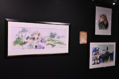「蟲師展」では、漆原の美麗なマンガ原稿を多数展示。「緑の座」から始まり、「柔らかい角」「枕小路」「瞼の光」「旅をする沼」と作中の掲載順に展示され、エピソードを時系列で振り返りながら原画を楽しめる。またカラー原画の高精細複製画は、漆原の繊細で淡い色使いや、幻想的で色彩表現が精密に再現され、作品の世界観を存分に味わうことができる。エピソード順に展示を観ていくことで、漆原の作画が少しずつ変化していく様子も捉えられ、連載当時を知らない読者にも当時の雰囲気を感じられる展示に仕上げられた。