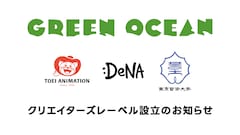東映アニメーション、ディー・エヌ・エー、東京藝術⼤学大学院映像研究科アニメーション専攻企画開発研究室が、3者合同によるクリエイターズレーベル「GREEN OCEAN」を本日10月27日付で設立した。