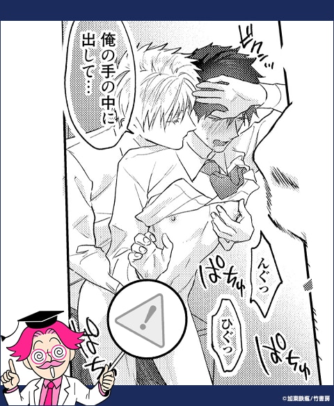 「今日はガチ泣きしても絶対止めない」と心に誓った蛇見による容赦のない生●メバックで、文字通りめちゃくちゃにされる蛭間。蛭間の腰をガッチリ掴んでピストンする蛇見と、超濃厚な行為に快楽を逃せずひたすら喘ぐ蛭間には、ニヤニヤが抑えられません!