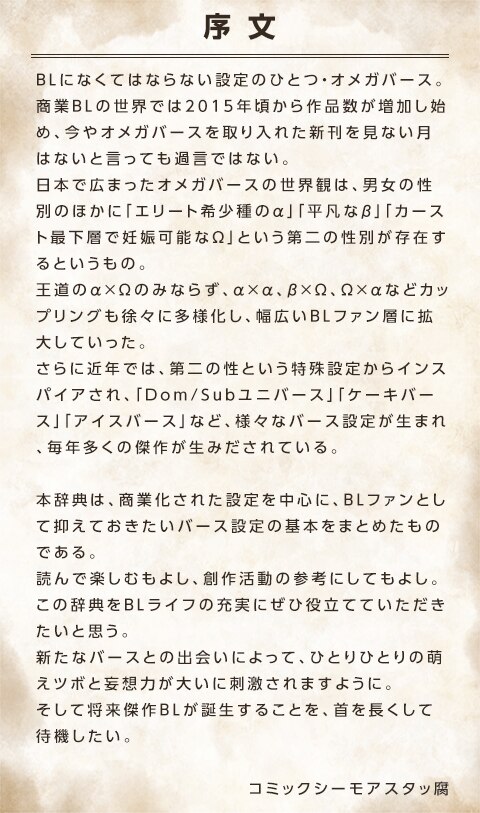 ボーイズラブ | これで丸わかり!バース辞典  | オメガバース | ケーキバース | Dom/Subユニバース | センチネルバース | ガイドバース | ドーズバース | ネームバース | ポメガバース | ガーデンバース
